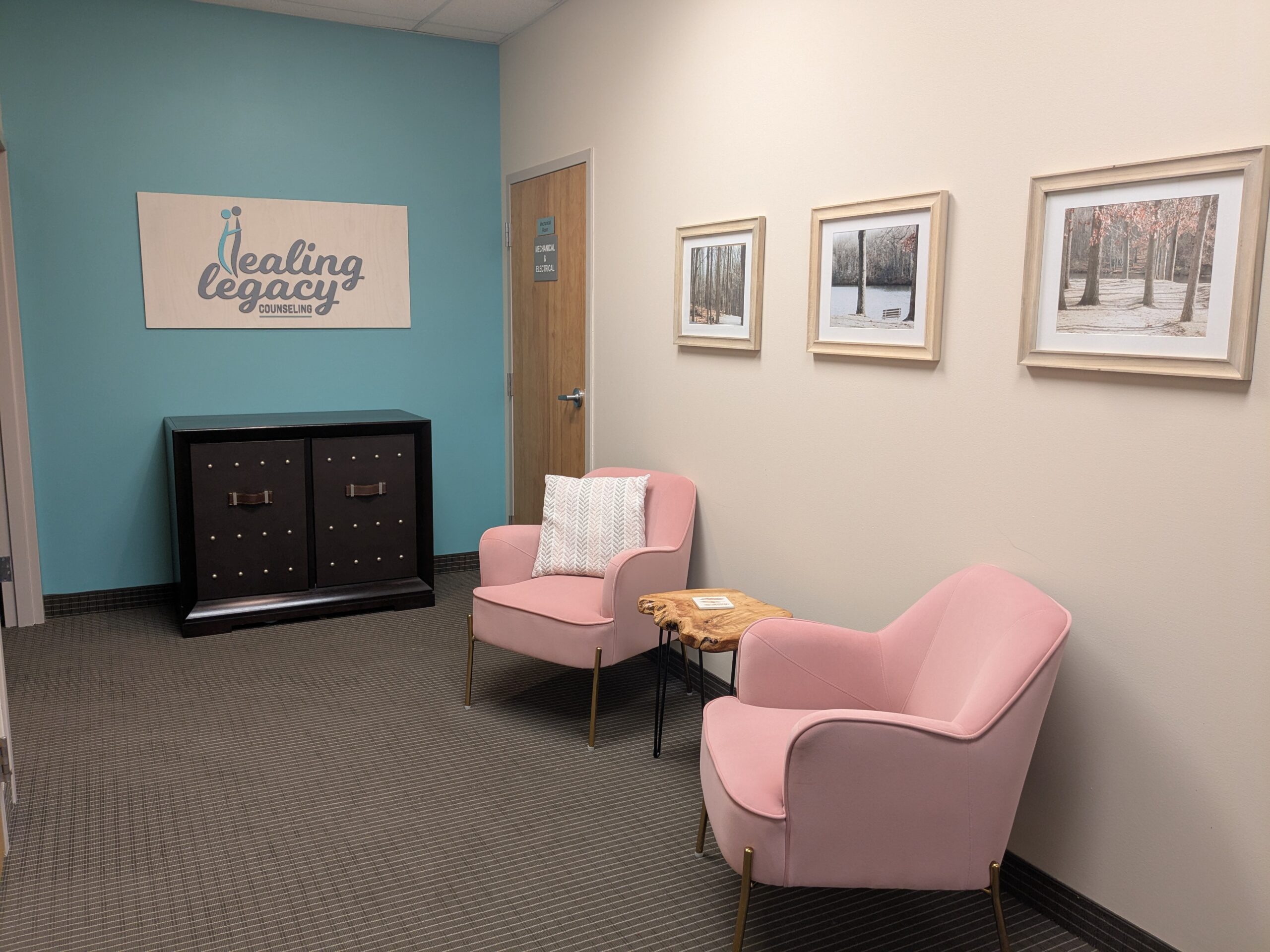 Healing Legacy Counseling has a physical office space located in Hudson, Ohio. We are very close to Route 8, right off the Boston Mills exit. Each of our spaces are thoughtfully maintained to accommodate individual, couple, and family sessions as needed, with room in the lobby for parents, siblings, or loved ones to wait in comfort during your appointment.